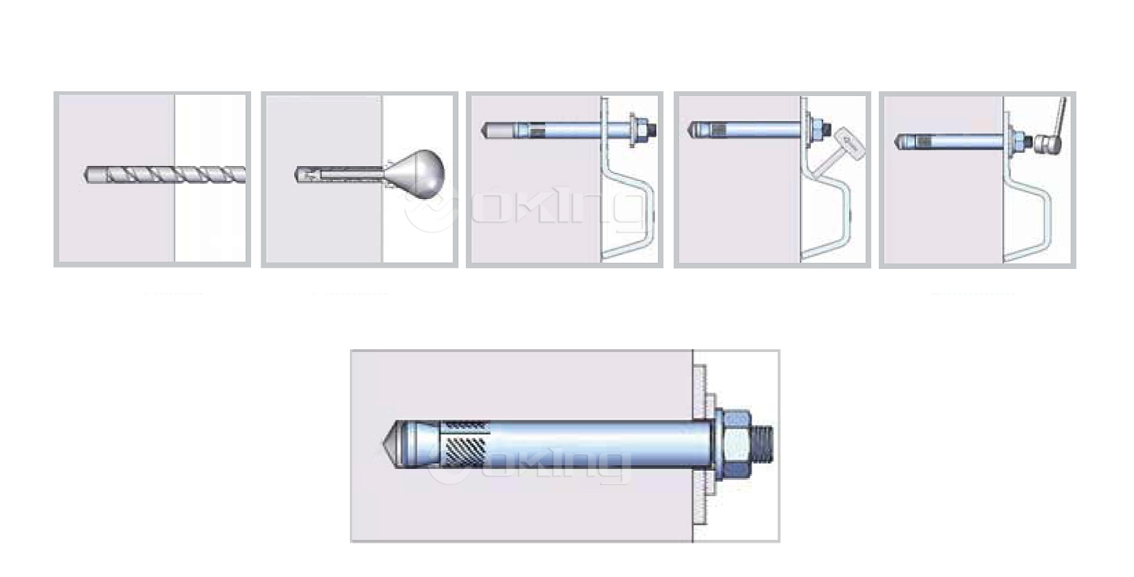 ●Làm sạch mọi mảnh vụn trong lỗi, sau đó đặt neo rải rác qua thiết bị cố định hoặc trực tiếp vào bê tông và đóng lỗ khoan, đảm bảo rằng chúng được lắp ở độ sâu mong muốn.